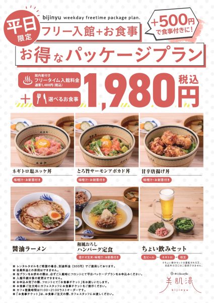 フリータイムプランとお食事、館内着がセットで 税込1,980円